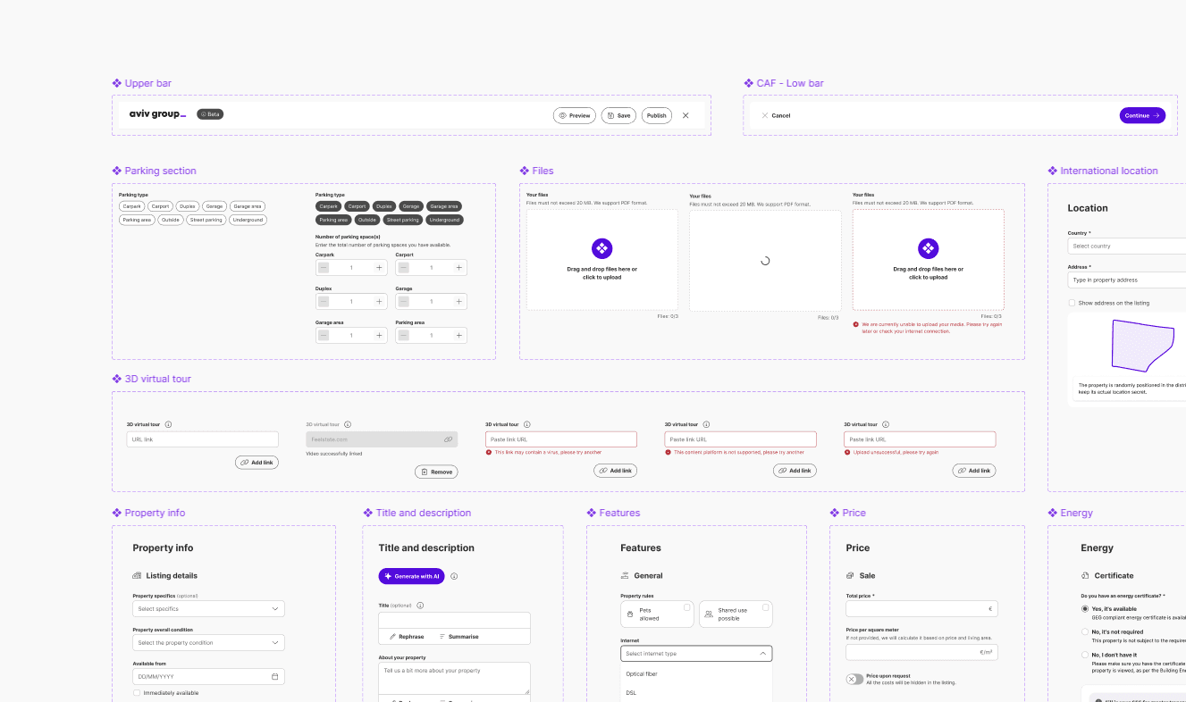 We analyzed the sessions to identify the most important fields for both seekers and agents, cross-referenced the information, removed non-essential fields, and organized the remaining ones into groups.