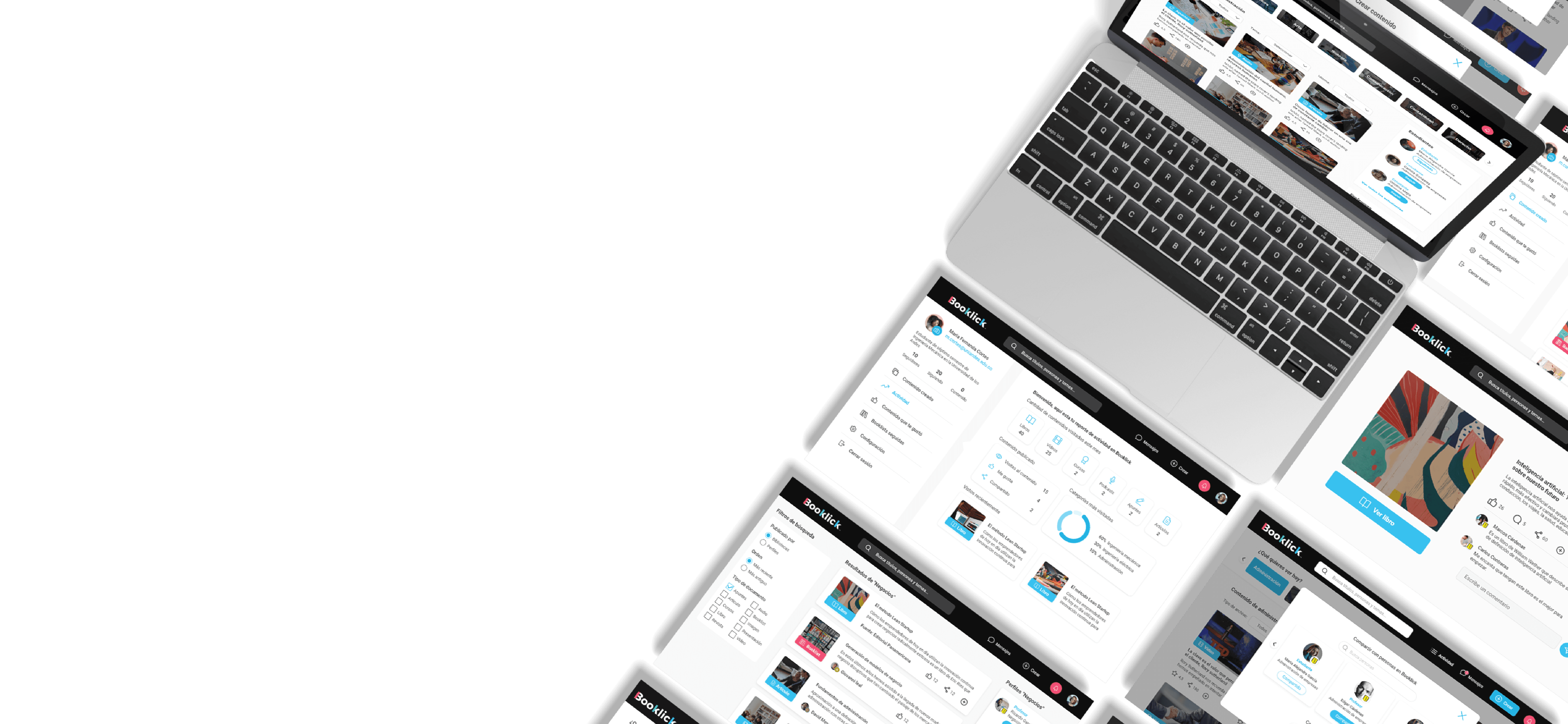 The Booklick ecosystem is made up of five modules, which, when integrated, facilitate access to and consultation of digital content.